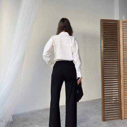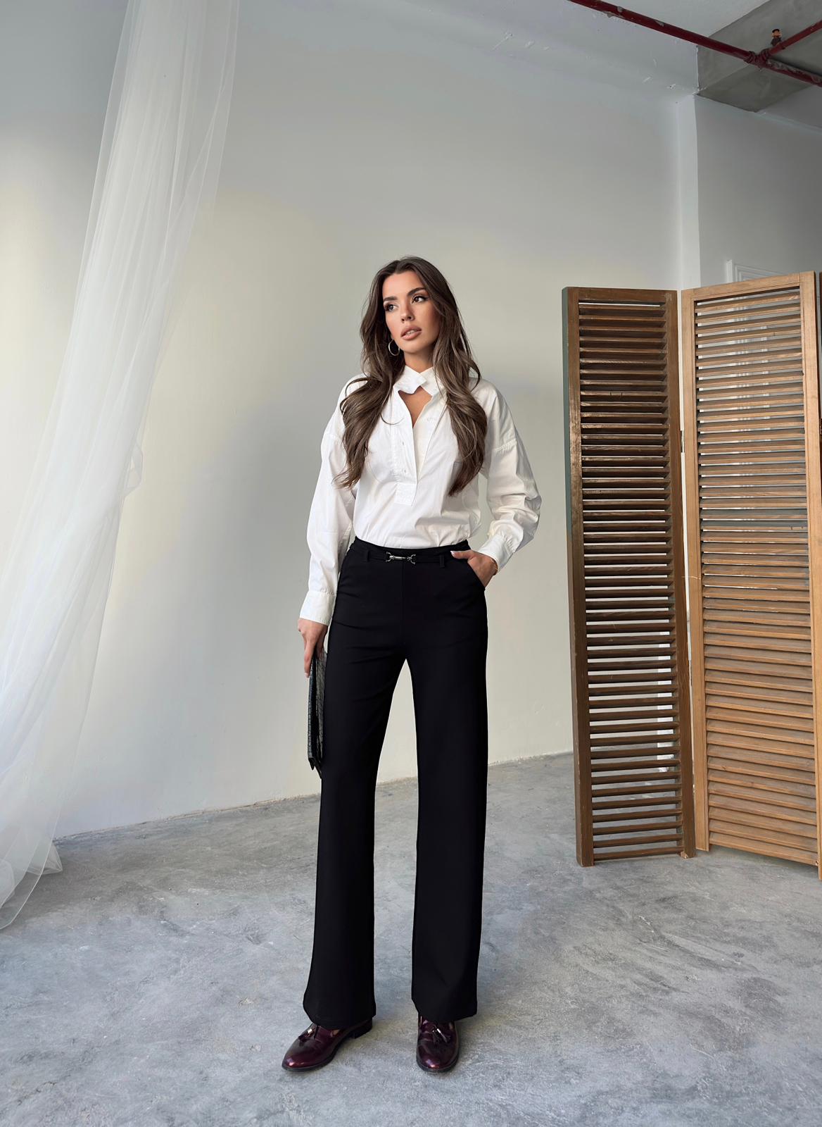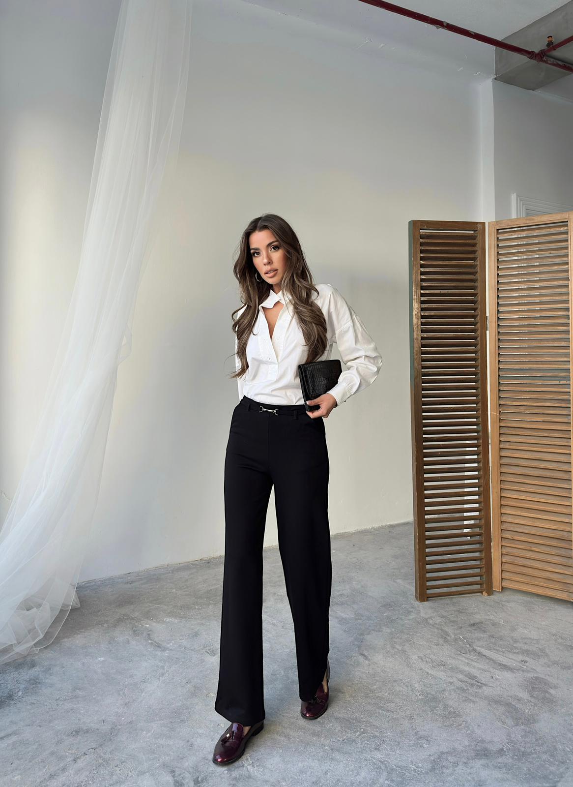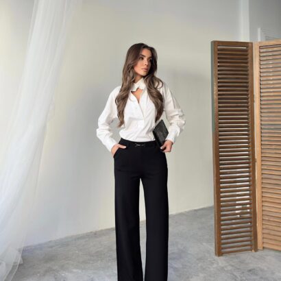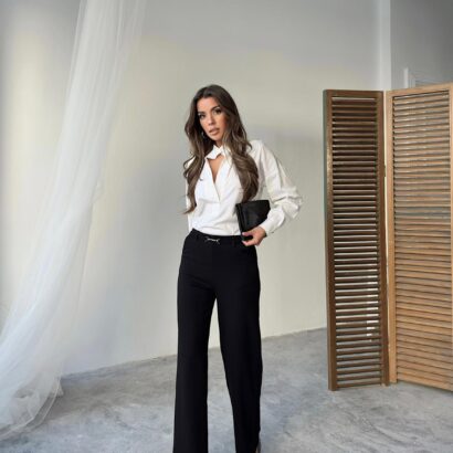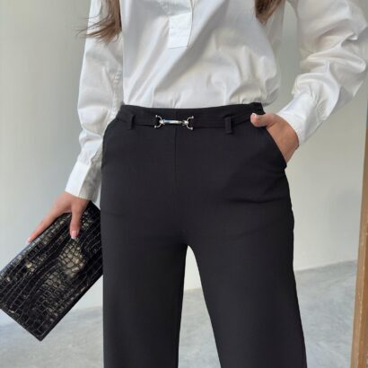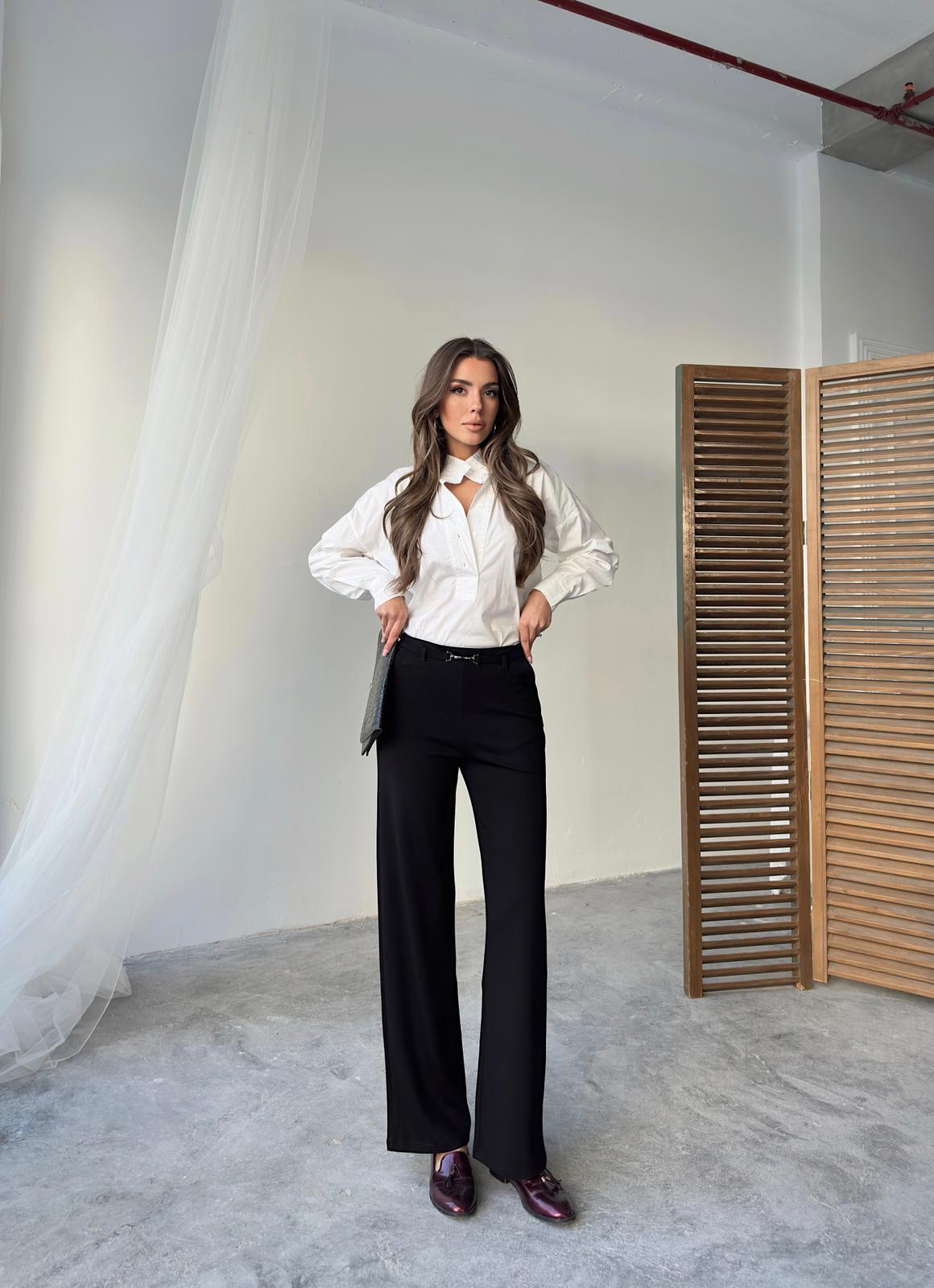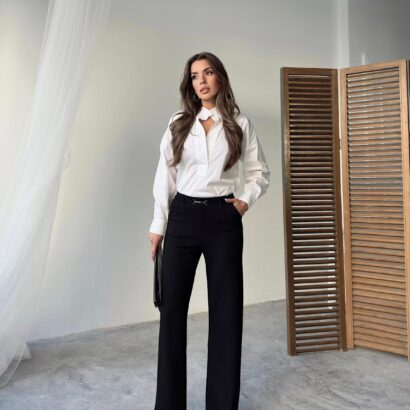 Wide and straight cut fabric trousers that contain Lycra, very suitable for occasions and work. Order them now