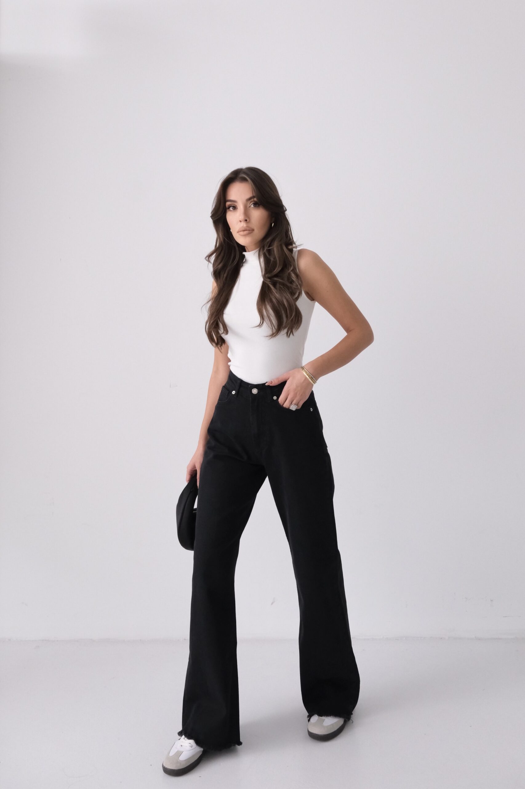 A true wardrobe essential with a high-waist silhouette that defines the waist and long wide-leg fit that creates a clean, elongated line.