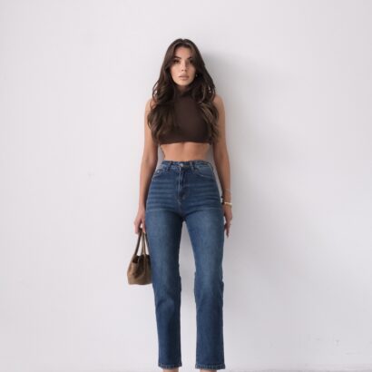 Featuring a traditional five-pocket design, secure zip fly with metal button, and a high-rise waist that enhances the natural shape.
